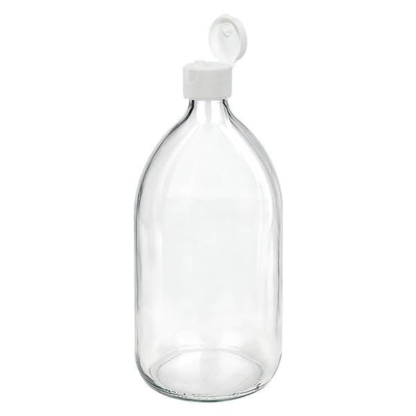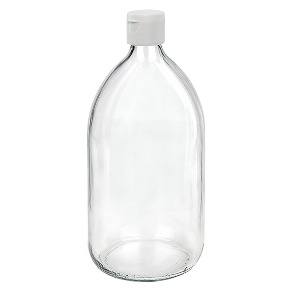 1000ml Euro-Medizinflasche klar mit weissem Klappverschluss