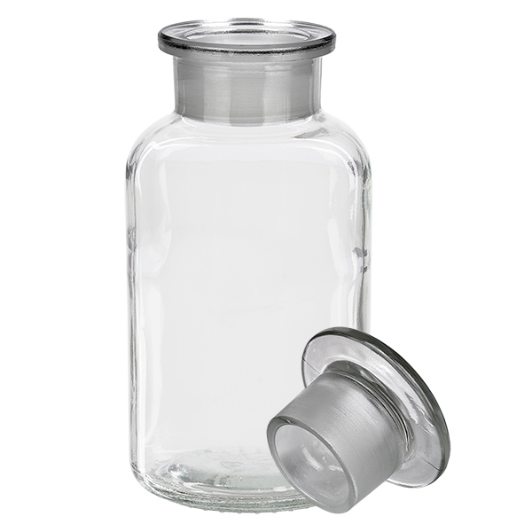 Apothekerflasche 500 ml Weithals Klarglas inkl. Glasstopfen