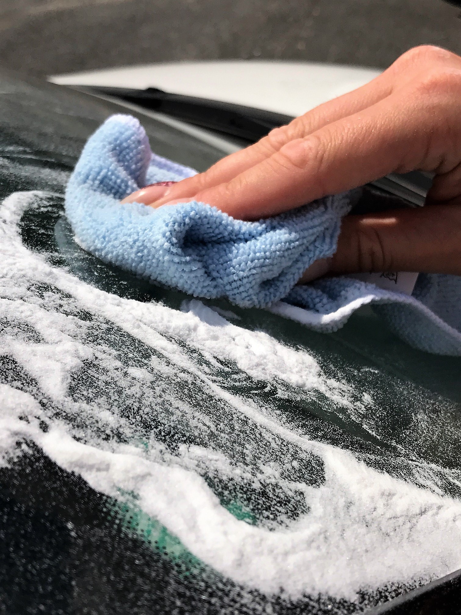 Parallel kann man zur Polsterreinigung die Einwirkzeit nutzen und Natron auf einen Schwamm geben und die Autoscheiben von Insekten und anderen Schmierereien befreien. Anschließend muss lediglich mit klarem Wasser nachgespült werden und fertig! Die Sicht ist frei