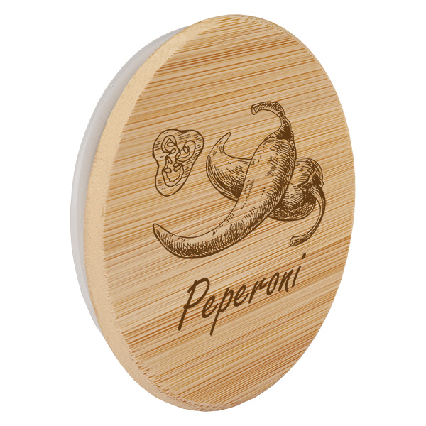 - Aufdruck: Brauner Schriftzug und Bild "Peperoni"