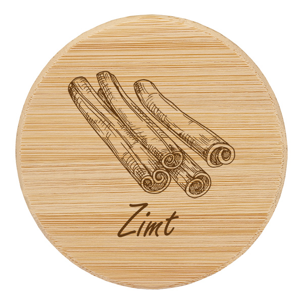 • Aufdruck: Brauner Schriftzug und Bild "Zimt"