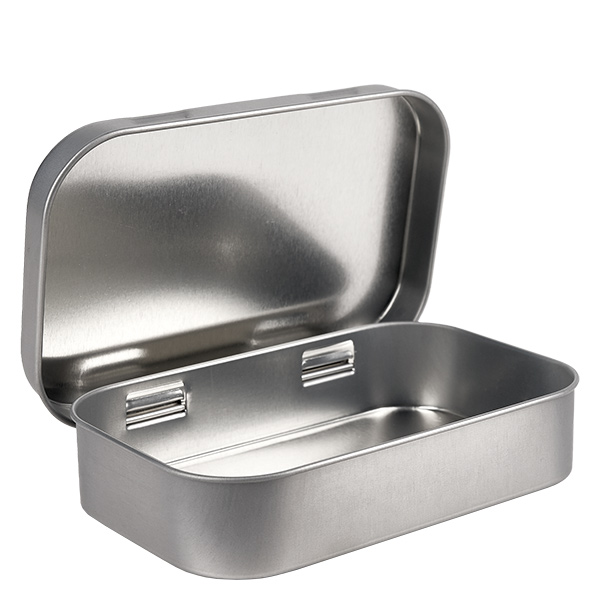 Kleine Quadratische Metalldose aus elektronischem Weißblech, mit Klappdeckel Abmessung:...mehr
