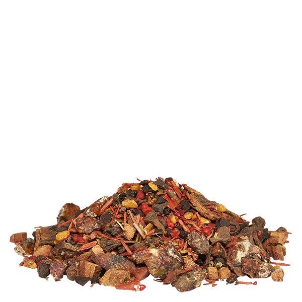 Benzoe Siam, Eichenrinde, grober Waldweihrauch, Rainfarn, Rotsandelholz, Schafgarbe, Styrax dunkel, Weihrauch rot, Zimt.