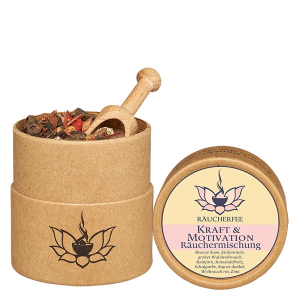 - Anwendung: Die Räucherfeemischung Kraft & Motivation weckt Energie in uns und aktiviert die Lebensgeister. Unterstützt uns bei gesundheitlichen Problemen und verleiht die Fähigkeit, gegen Belastendes anzugehen.